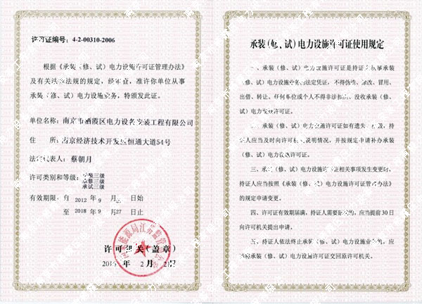 承裝(修、試)電力設施許可證